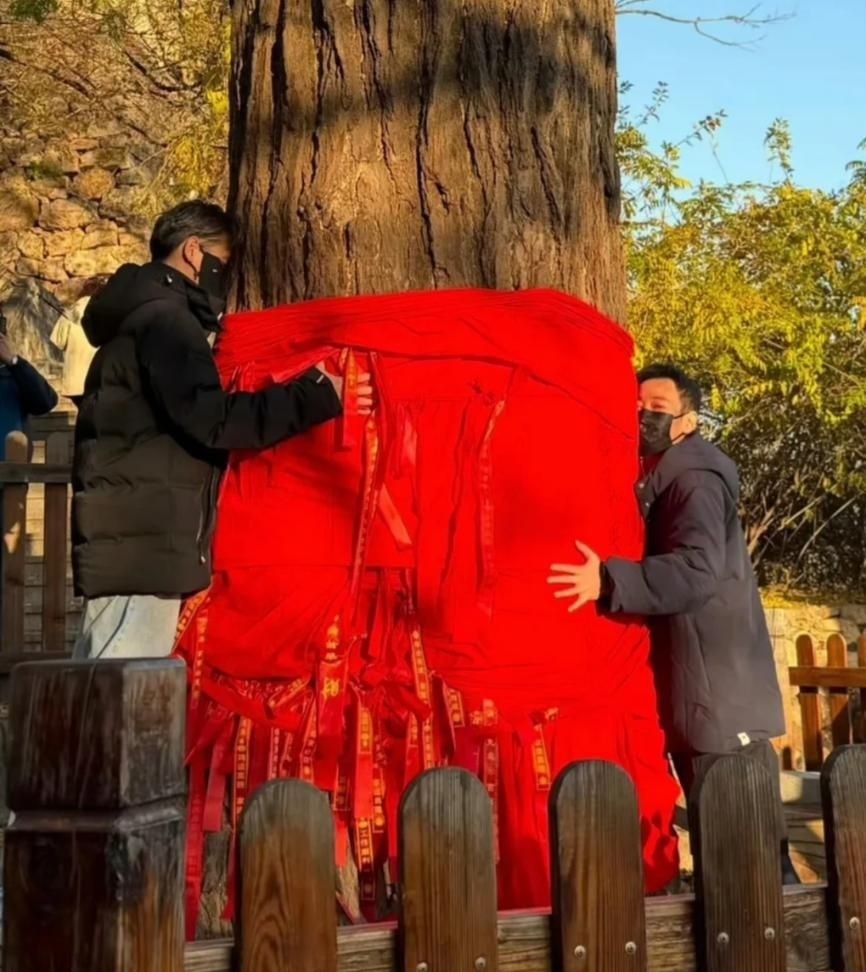 50. 目击者拍下的画面中,辛柏青紧紧环抱着那棵古老银杏,神情庄重,目光低垂,仿佛在与另一个世界的她对话。