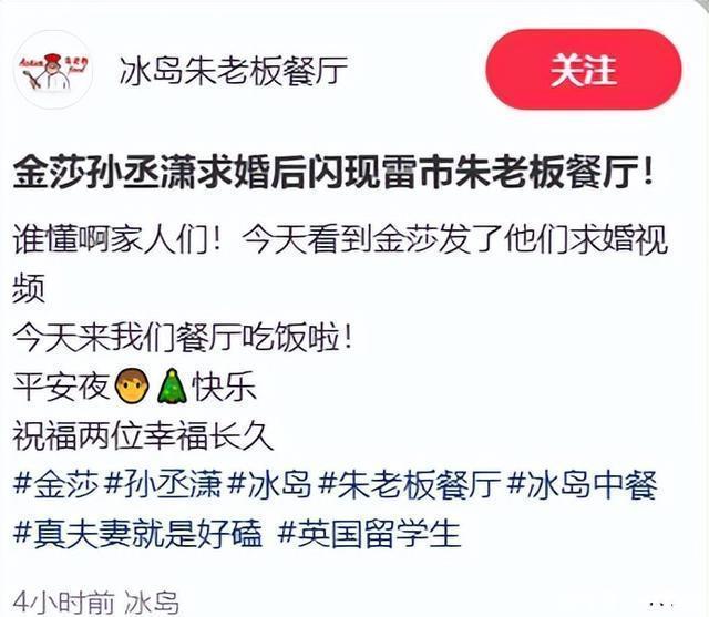 后来,还有网友偶遇金莎和孙丞潇在冰岛的中餐厅吃饭。
