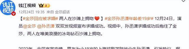 刚官宣的时候,网上全是难听的话。 有人说金莎是“老牛吃嫩草”,有人说孙丞潇是“软饭男”,想借金莎的名气上位。